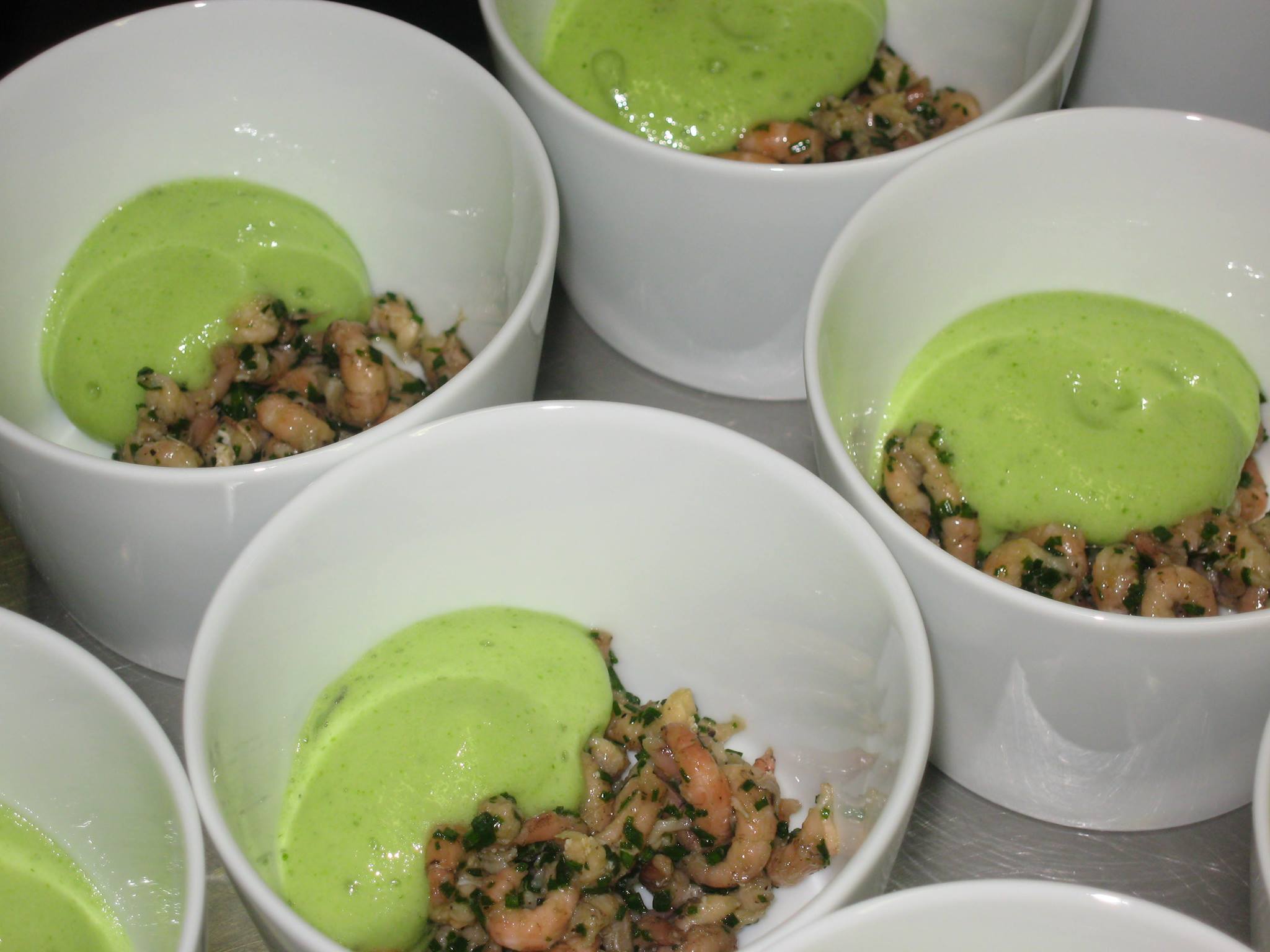 Crevettes grise épluchées – ciboulette finement hachée – huile d’olive – très très peu de sel ( goûter) – poivre