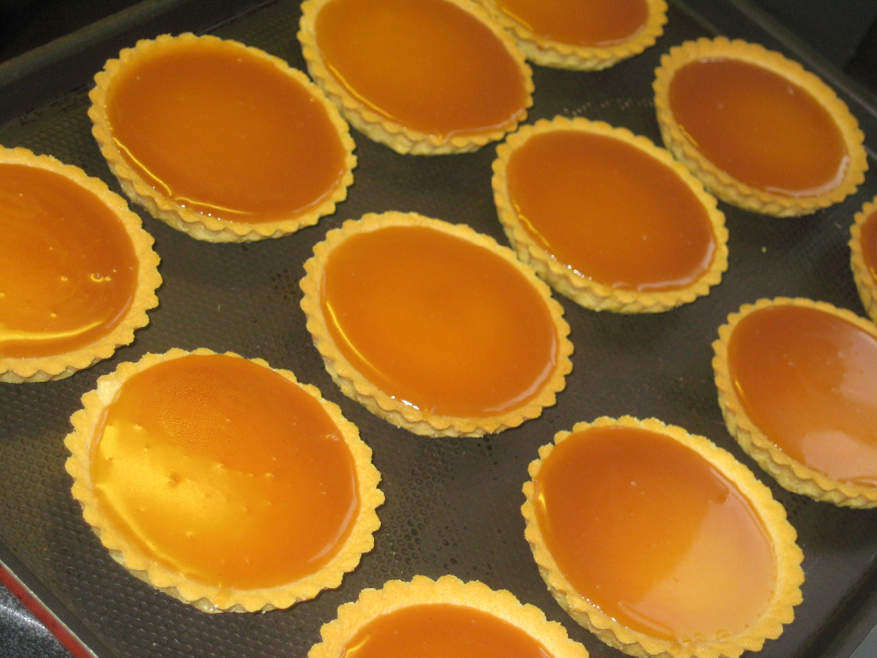 Mettre au four à 90°C pendant 1 heure. La pâte des tartelettes ne cuira pas plus, mais la crème oui ! Miracle !